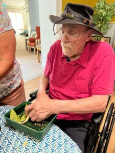 Now in his retirement at Sundial Care Home near Sidmouth, Devon, Stan is supported to continue enjoying the things he loves most, as the home’s three-acre gardens, regular Creative Minds crafting sessions, and animal visits allow him to stay connected to his passions. Stan is a regular at the home’s gardening club and enjoys socialising, “Stan is truly green fingered, and sows’ seeds and pots on seedlings for us that flourish in our garden” shared Administrator, Mikyla. Sundial has also planted his willow fox, a piece he wove himself, which now stands as a feature in the garden, and several of his woodcarvings are displayed in the home.
